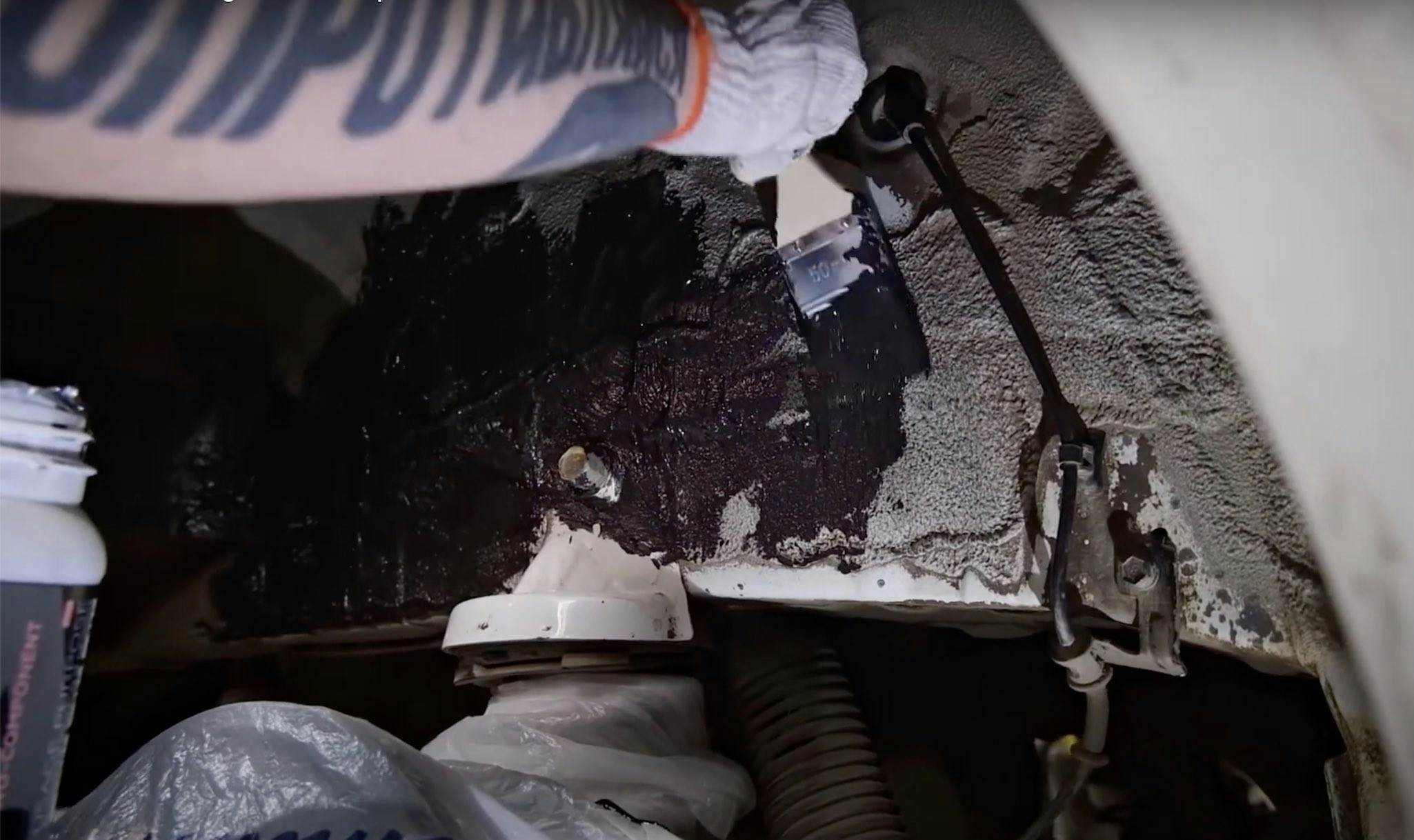 Tekoči izolacijski premaz za nedostopna mesta in kompleksne oblike. Nanaša se s čopičem ali pršilom na površine, kamor plošče ni mogoče namestiti. Kolesni loki, strukturni elementi, prehodi med površinami. Suši se v elastično plast z dušilnimi lastnostmi. Dodatna protikorozijska zaščita.